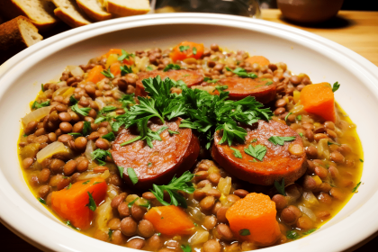 Kombinace kouřových příchutí klobásy a měkkých čoček zajišťuje obzvláště vydatnou a plnou…