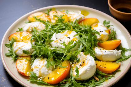 Fenyklový broskvový salát s burrata a medové citrony oblékání