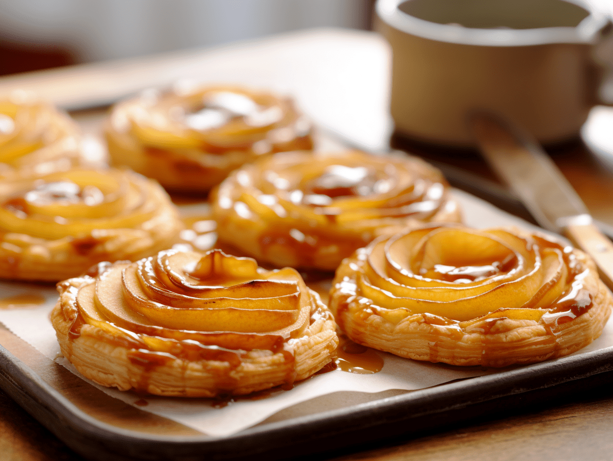 Zlatá hnědá, máslová pečivo tvoří lehký, křupavý rám pro náplň. Spolu s měkkými jablkami se vytvoří vzrušující pocit v ústech.
