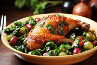 Smažené kuřecí nohy s mangoldem a teplým hroznovým salátem