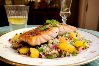 Fillet lososů s broskvovým zázvorem Chutney & Lukewarm quinoa salát