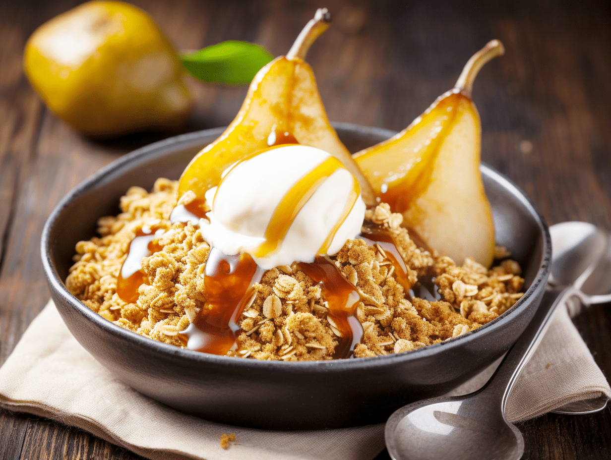Hrušky, zejména časné odrůdy jako Williams nebo Clapps Darling, jsou regionálně k dispozici od konce července. V kombinaci s ovesnými vločkami, ořechy a špetkou skořice vzniká dezert s přirozenou sladkostí a bohatým charakterem. Díky grilování, ovoci a javorovému sirupu sotva potřebujete další cukr – ideální pro každého, kdo si chce sladké vychutnat vědomě.