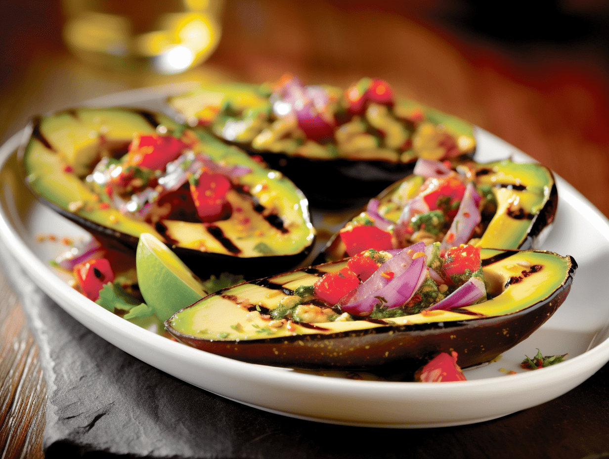 Avokádo na grilu není každodenní záležitostí – vypadá zvláštně, moderně a kreativně, ideální pro foodblogy, večírky nebo sociální sítě.