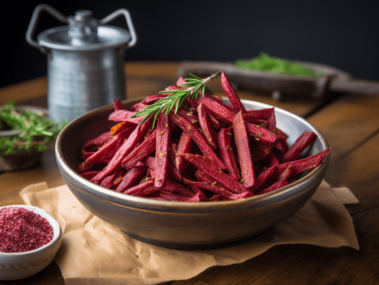 Jasně červená barva dělá z hranolků opravdový poutač a přináší rozmanitost na stůl. Červená řepa je plná vitamínů, minerálů a antioxidantů – na živiny mnohem bohatší alternativa ke klasickým hranolkům.