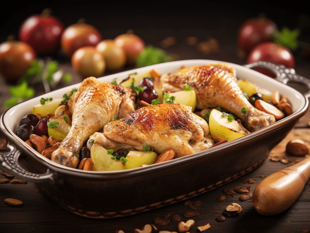 Lehce nakyslá jablka báječně ladí s ořechovými kaštany a pikantním kuřecím masem – chuťová vytříbenost, která hosty překvapí.