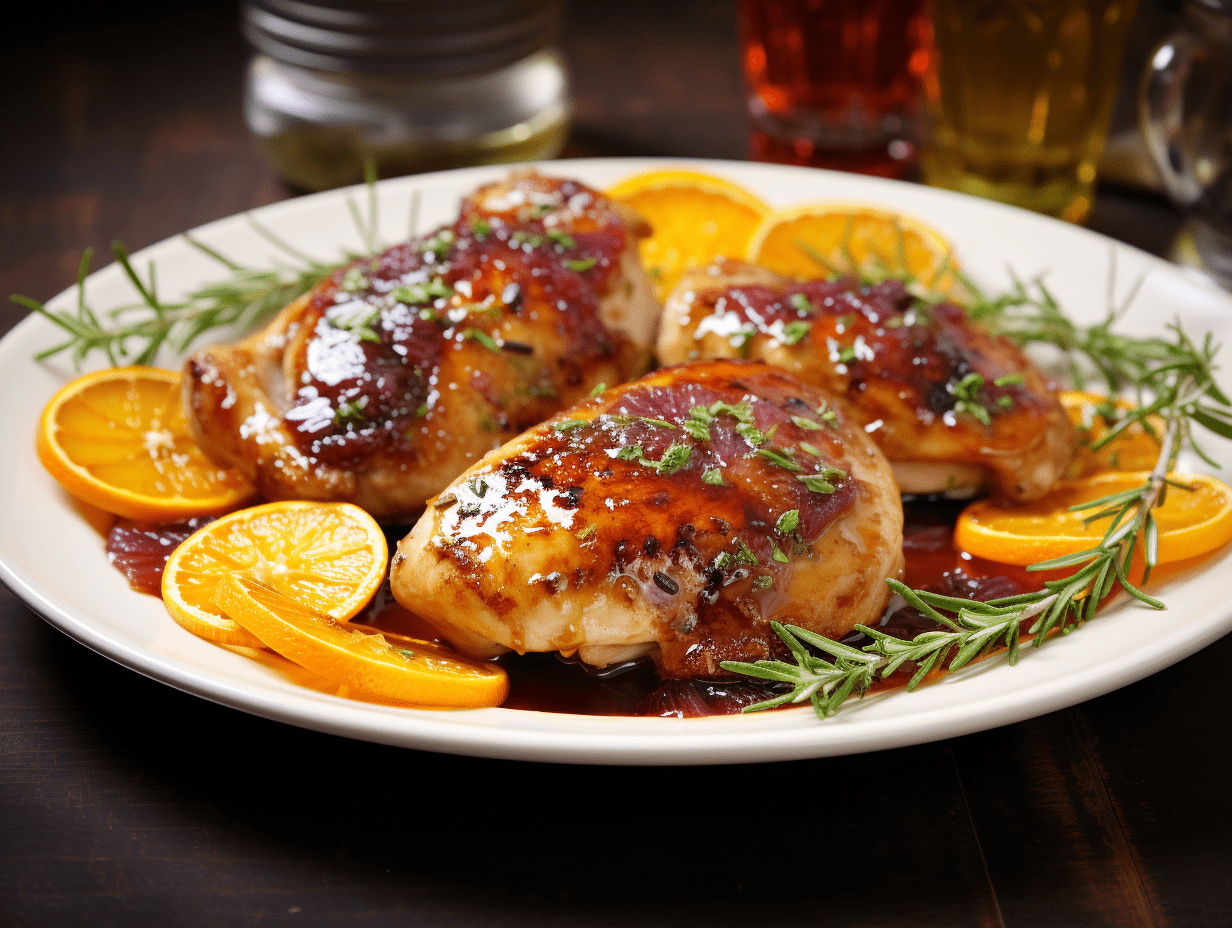 Kuře se jemně vaří v pomerančové šťávě, a proto zůstává úžasně jemné a šťavnaté – bez dlouhých marinování.